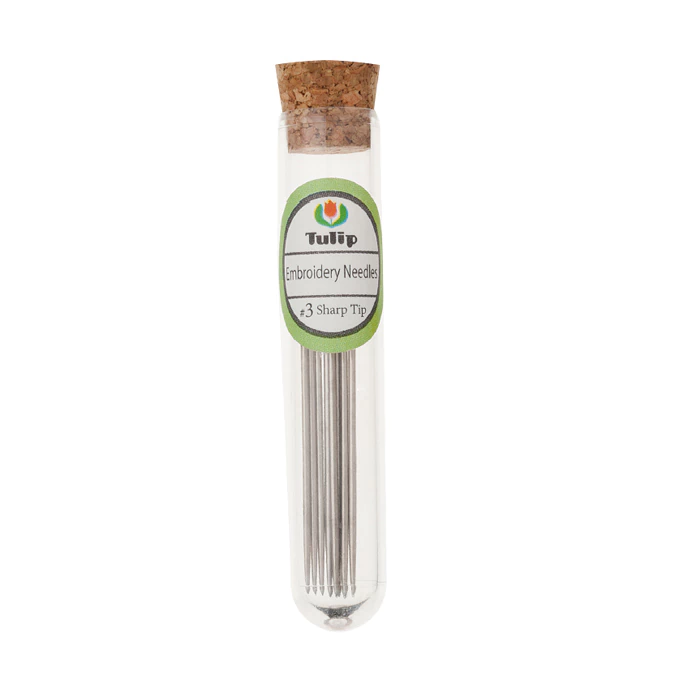 Las agujas de Bordar de la marca Japonesa TULIP son una de las agujas más exclusivas y prestigiosas del mundo. Están fabricadas en la ciudad de Hiroshima, Japón, bajo máximos estándares de calidad. Cada juego de agujas está compuesta por 6 agujas contenidas en un tubo de vidrio con tapa de corcho facilitando su guardado, traslado y conservación.
