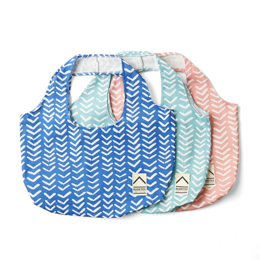 Estos bolsos forman parte de nuestra línea ESPIGA inspirada en las tramas del tejido. El diseño de la estampa fue creado por nuestra división CRAFT STUDIO y es el hilo conductor de mucho de lo que hacemos dentro de Budetex!