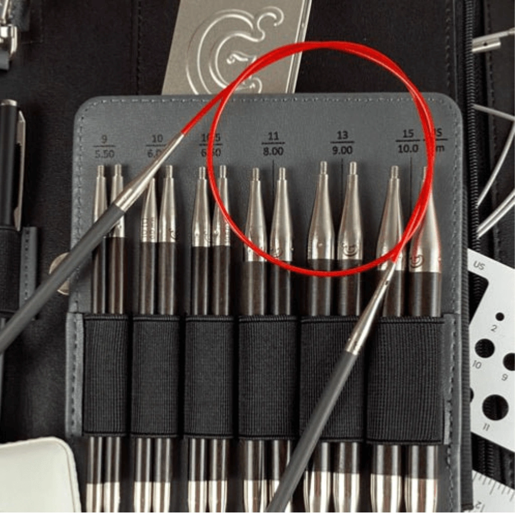 El set incluye una variedad de cables sin memoria SWIV360™ y TWIST Red Lace, fabricados con acero recubierto de naylon, proporcionando resistencia y evitando enredos para tejer sin complicaciones. Los cables SWIV360™, con su sistema de unión giratoria de 360 grados, añaden un nivel adicional de comodidad al permitir que giren libremente mientras tejes. Este set es la combinación perfecta de estilo, funcionalidad y confort para elevar tus proyectos circulares.