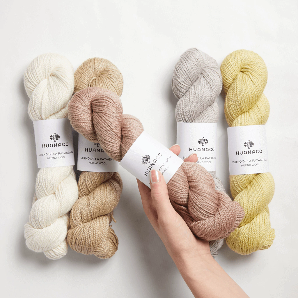 Merino de la Patagonia es la línea de hilados 100% de lana merino de la hilandería boutique Bonaerense HUANACO. Se trata de un hilado muy suave y de agradable al contacto con la piel, con una torsión firme y forma redondeada y perfecta definición de puntos. Producido en pequeños lotes , teñidos de forma artesanal utilizando tintes naturales y con fibras de origen regenerativo verificadas por la organización Land to Market™.