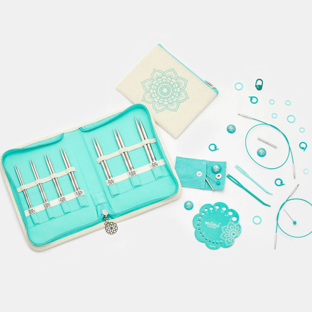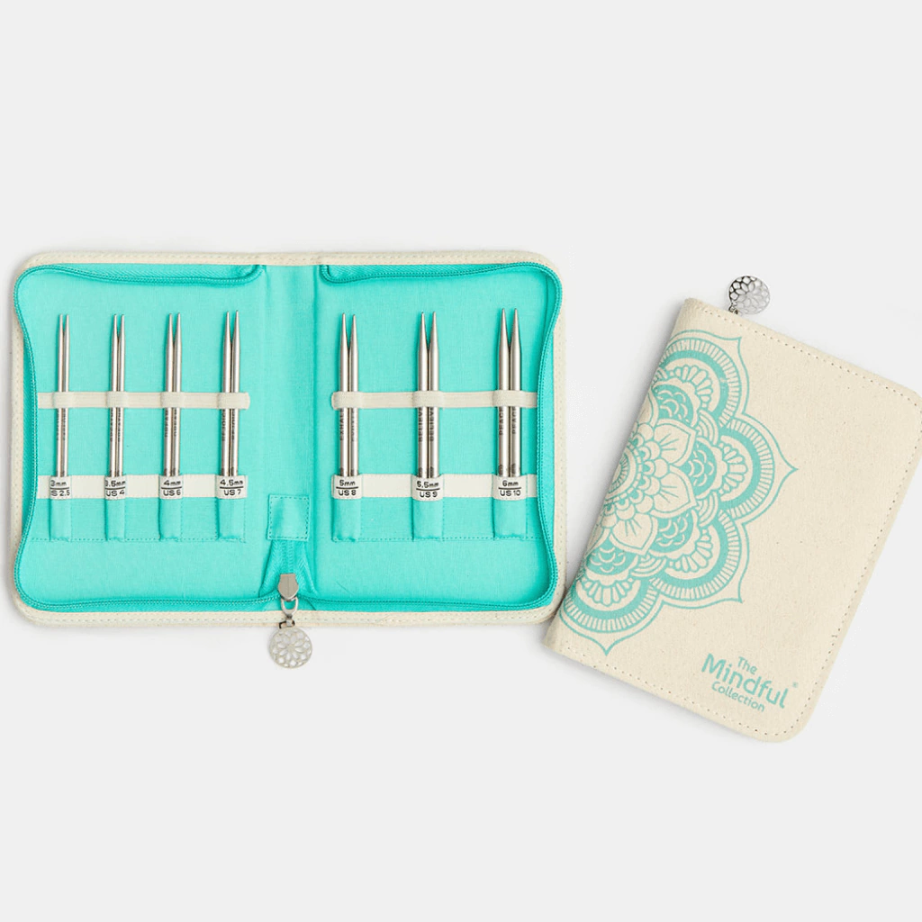 Este nuevo set de Agujas Circualres Intercambiables de Acero Inoxidable de la línea MINDFUL de KnitPro. Se trata de la novedosa línea de agujas de acero inoxidable CORTAS de 10 cms de KnitPro. Estas agujas no solo son super resistentes sino que son hipoalergénicas!