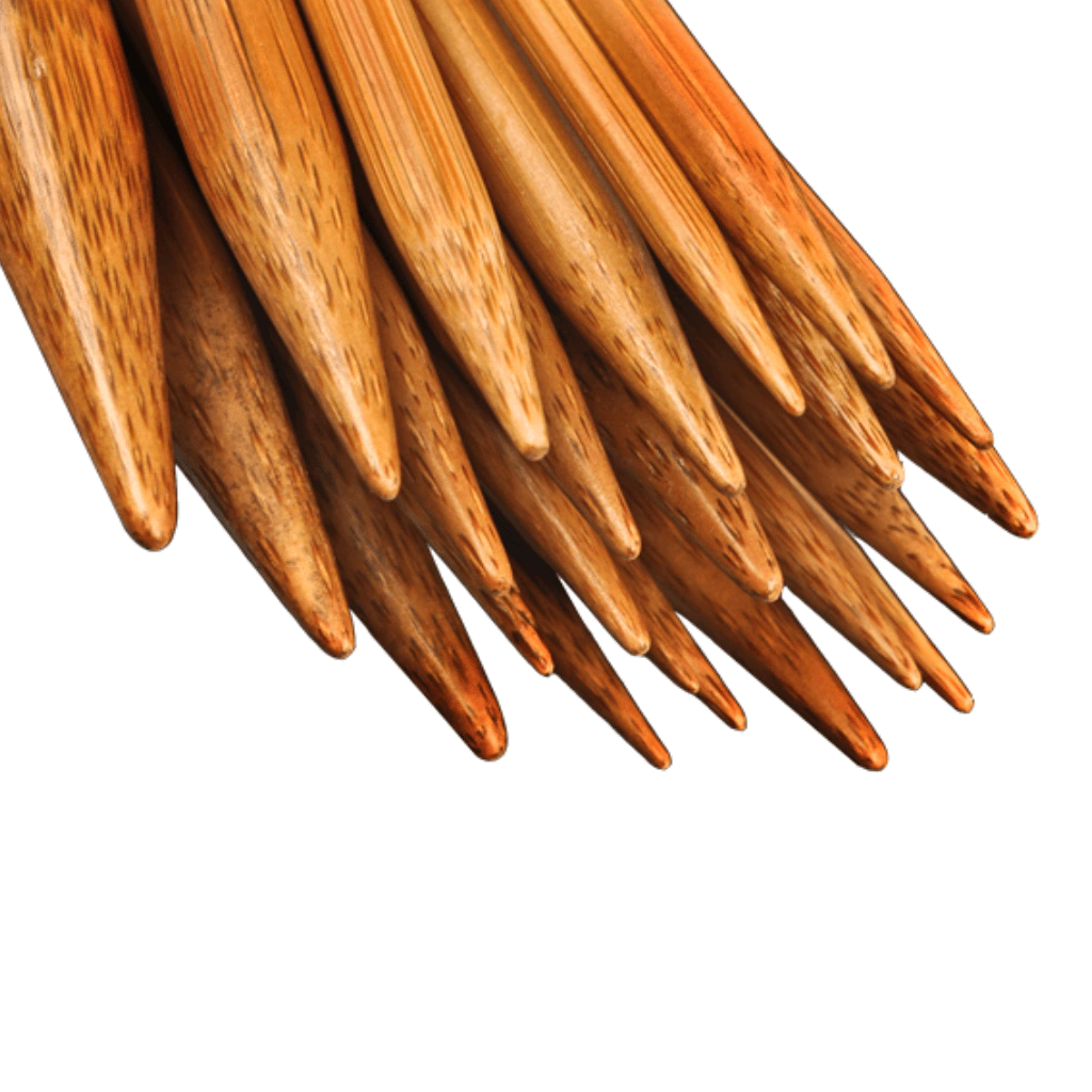 Las agujas están fabricadas en BAMBÚ un material muy liviano y suave al tacto, pero a la vez muy resistente.
