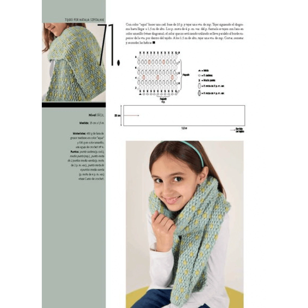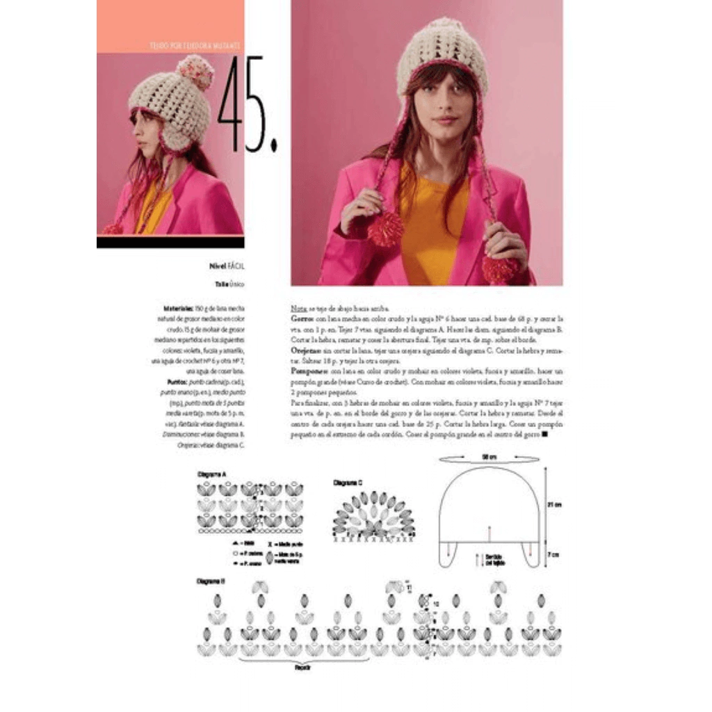 Con este libro podrás confeccionar diversas prendas de moda para todas las edades, deco y accesorios infaltables. Con diferentes niveles de dificultad y variedad de técnicas para aprender y desafiarte. Si recién estás empezando, te recomendamos comenzar con los de nivel fácil y una vez que tomes confianza ir subiendo de nivel para aprender paso a paso con la práctica. Cada diseño tiene explicaciones detalladas, diagramas de punto, moldería y/o ayuda de esquemas con fotos a todo color para que veas todos los detalles y elijas tu próximo proyecto.