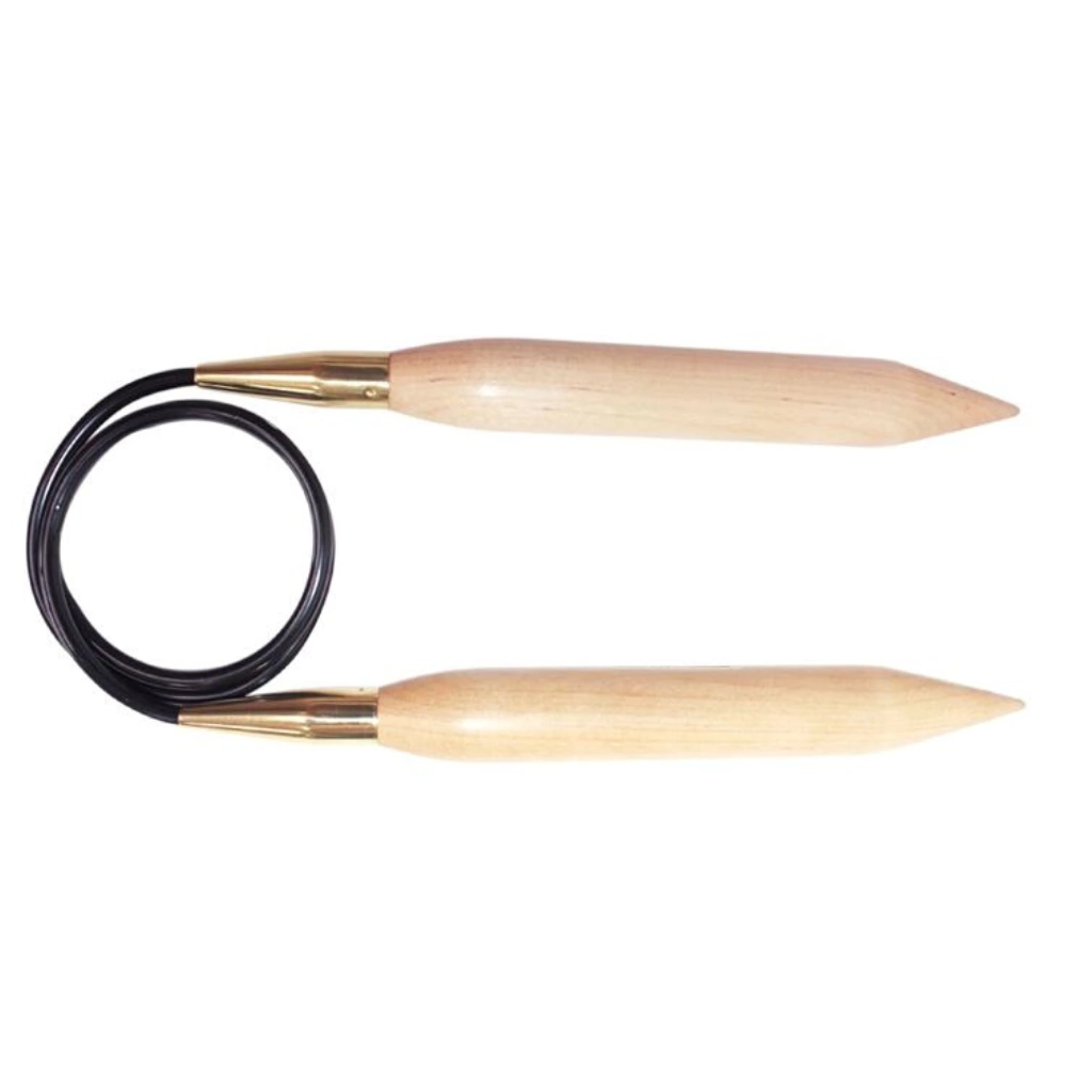 Las agujas de tejer circulares KnitPro de la serie JUMBO XXL BIRCH están fabricadas en madera de abedul y con un cable de 120 cms con juntas de unión perfectas que evitan los enganches. Esta línea de agujas mezcla la suavidad y ligereza del abedul con la resitencia de la madera natural. Es ideal para trabajar hilados voluminosos de moda, ya que tiene un excelente deslizamiento y no genera enganches gracias y su excelente terminación.