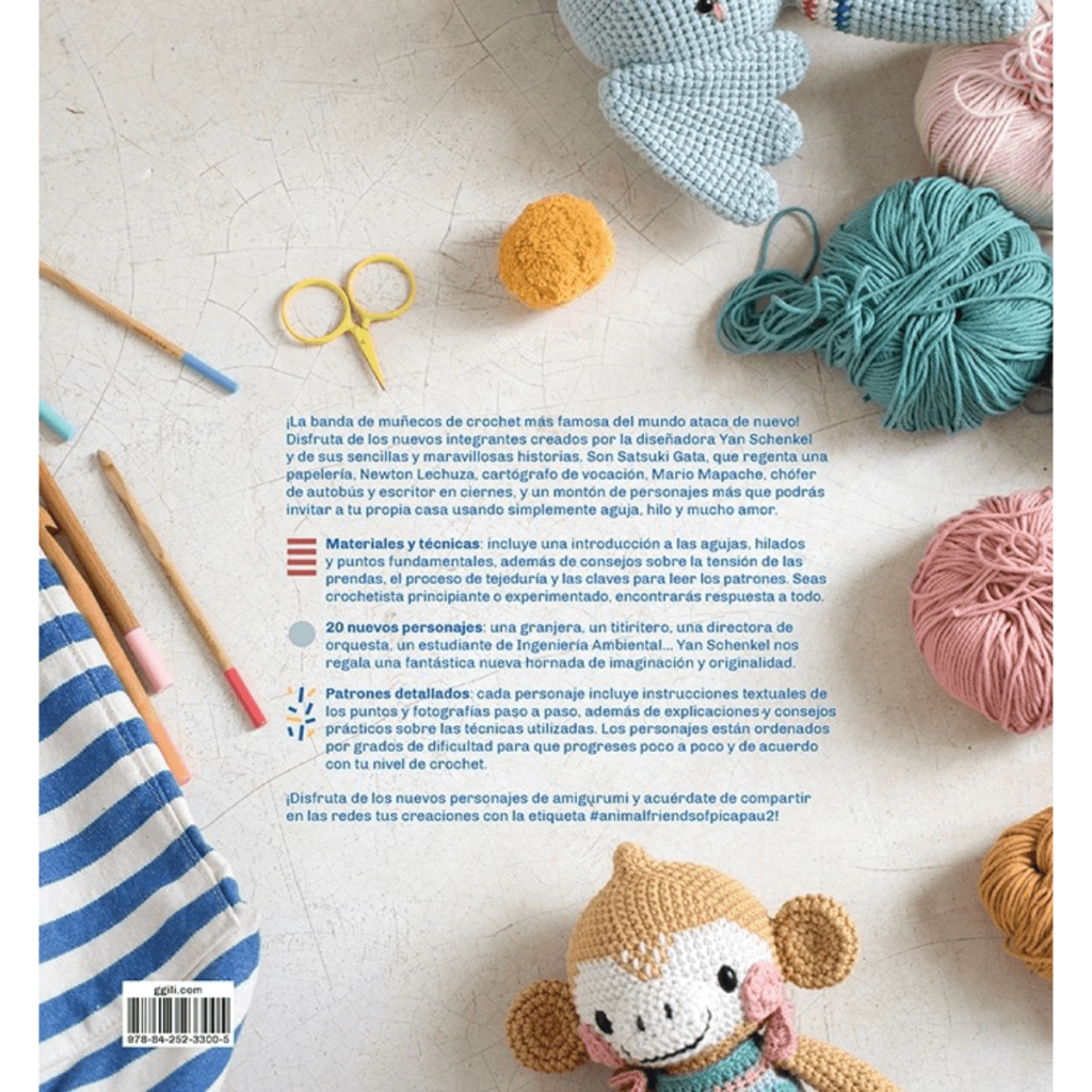 ¡La banda de muñecos de crochet más famosa del mundo ataca de nuevo! Disfruta de los nuevos integrantes creados por la diseñadora Yan Schenkel y de sus sencillas y maravillosas historias. Son Satsuki Gata, que regenta una papelería, Newton Lechuza, cartógrafo de vocación, Mario Mapache, chófer de autobús y escritor en ciernes, y un montón de personajes más que podrás invitar a tu propia casa usando simplemente aguja, hilo y mucho amor.
